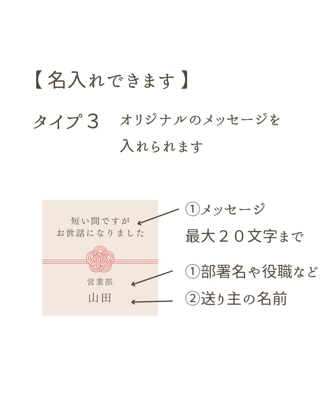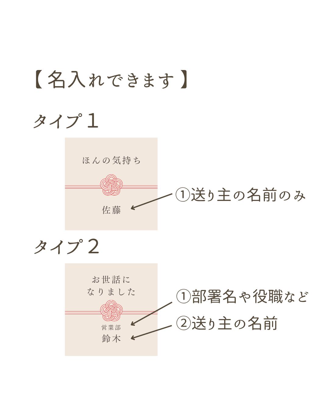 ギフト商品に、オリジナルのメッセージや名入れができます