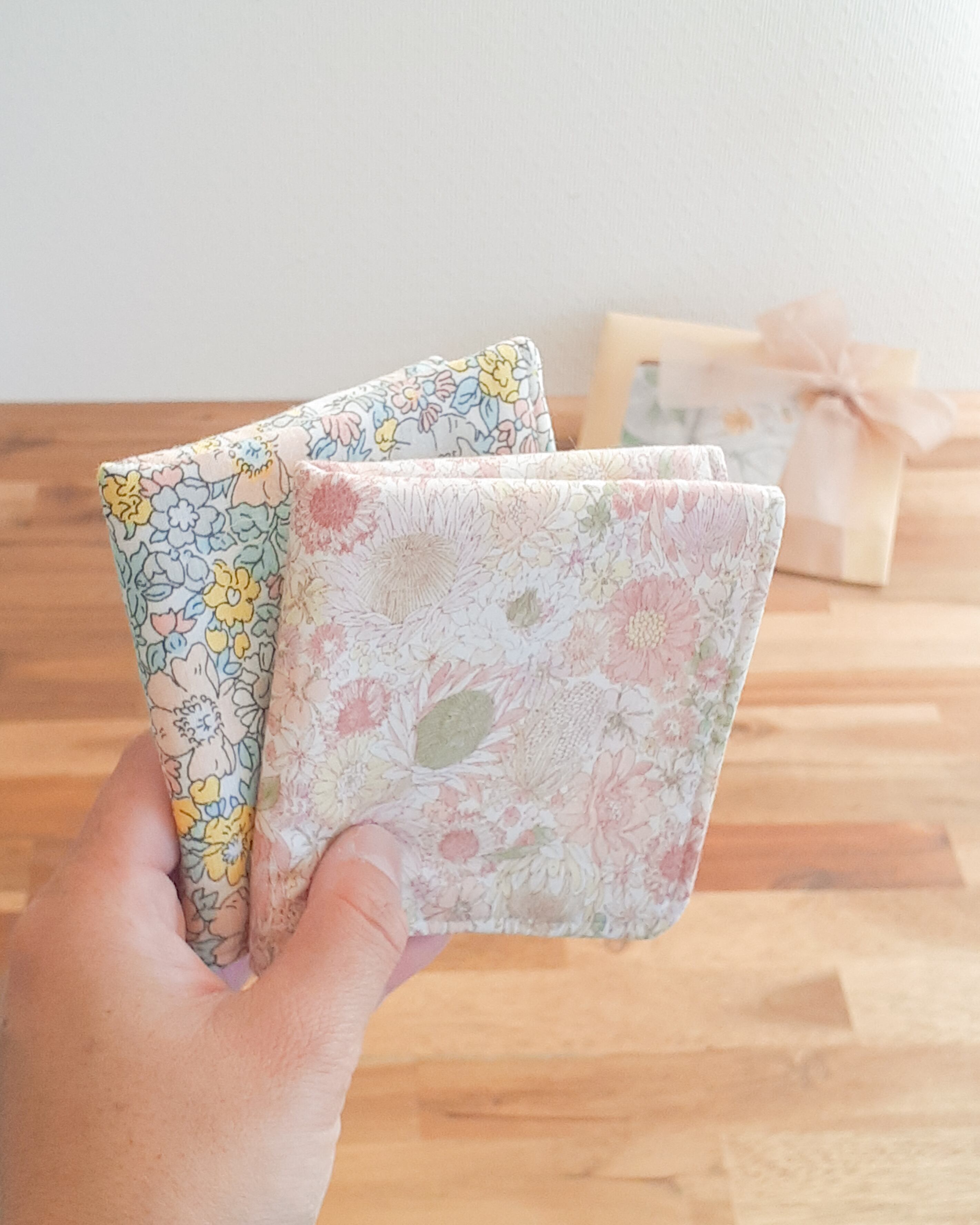 定番サイズのハンカチ2枚をセットにし、ナチュラルなラッピングでお届けする【秋限定ギフトセット】