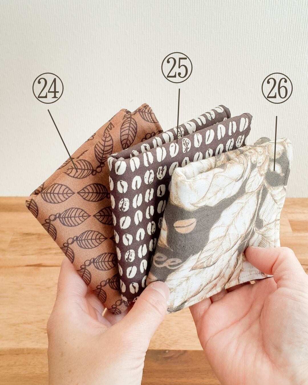 赤ちゃんにもおすすめできるくらいやわらかな生地を選び、3種類の生地を組み合わせて仕立てたハンカチ