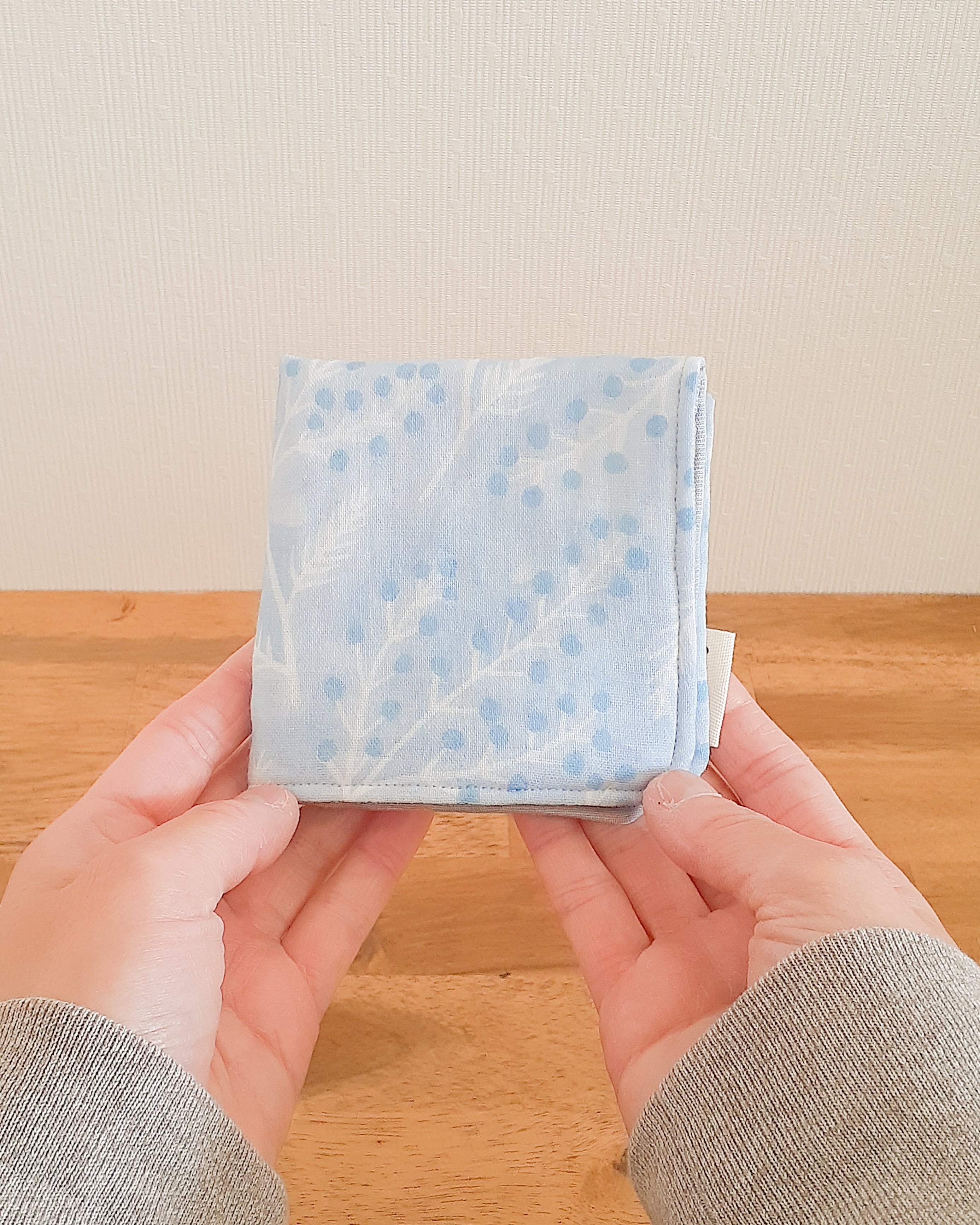 赤ちゃんにもおすすめできるくらいやわらかな生地を選び、3種類の生地を組み合わせて仕立てたハンカチ