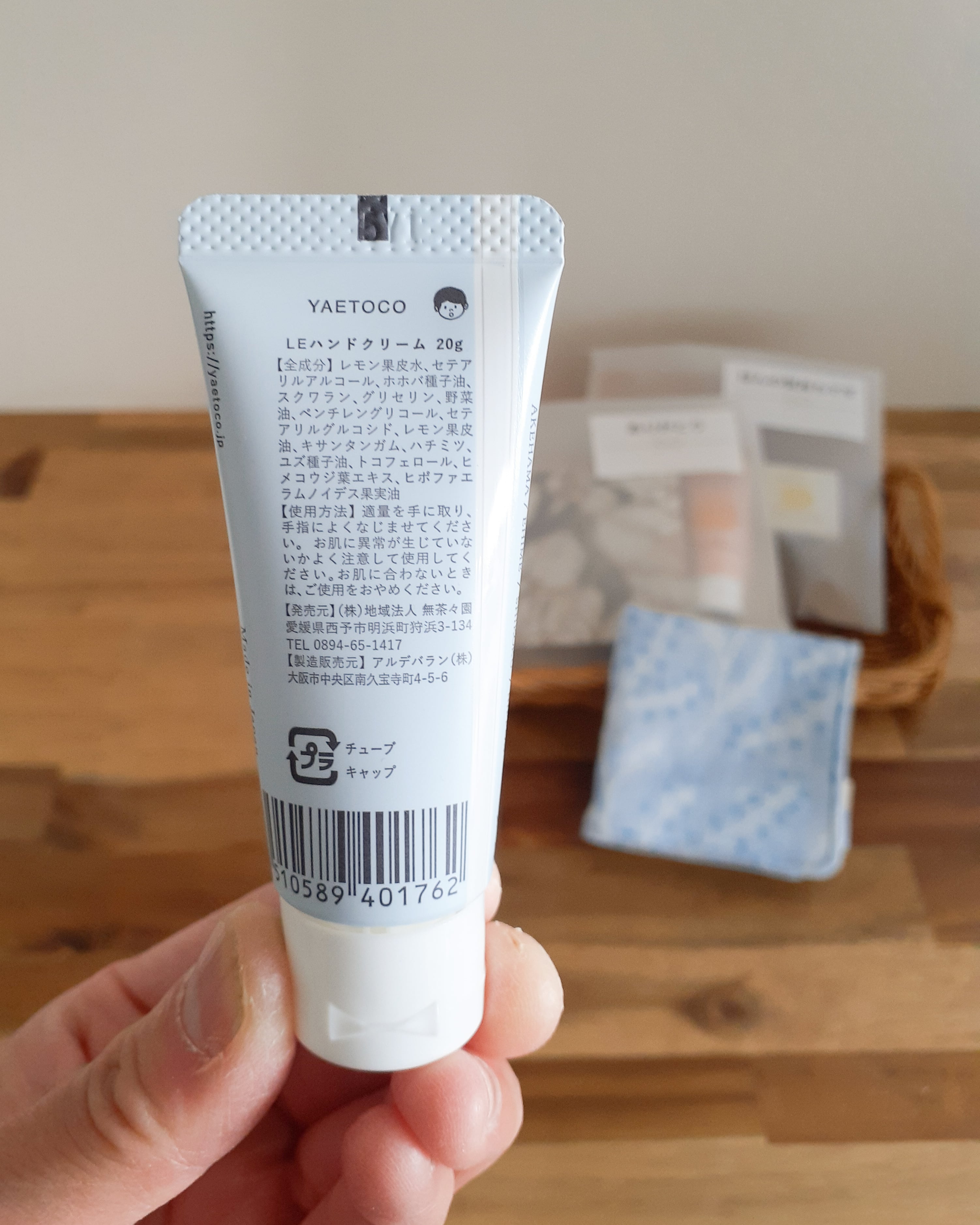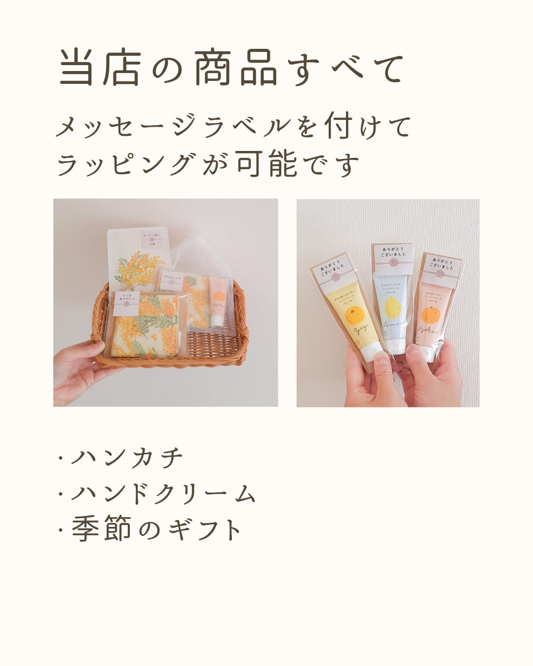ハンカチと小さなハンドクリームのセットです