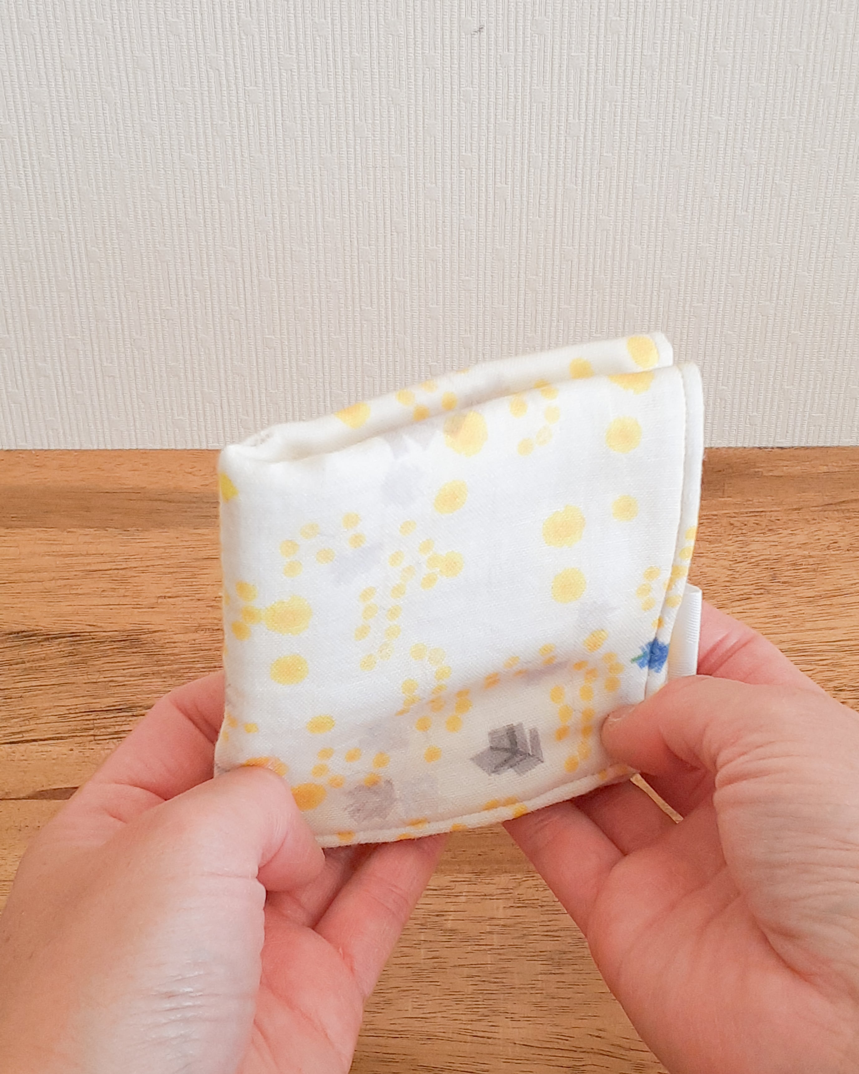 赤ちゃんにもおすすめできるくらいやわらかな生地を選び、3種類の生地を組み合わせて仕立てたハンカチ