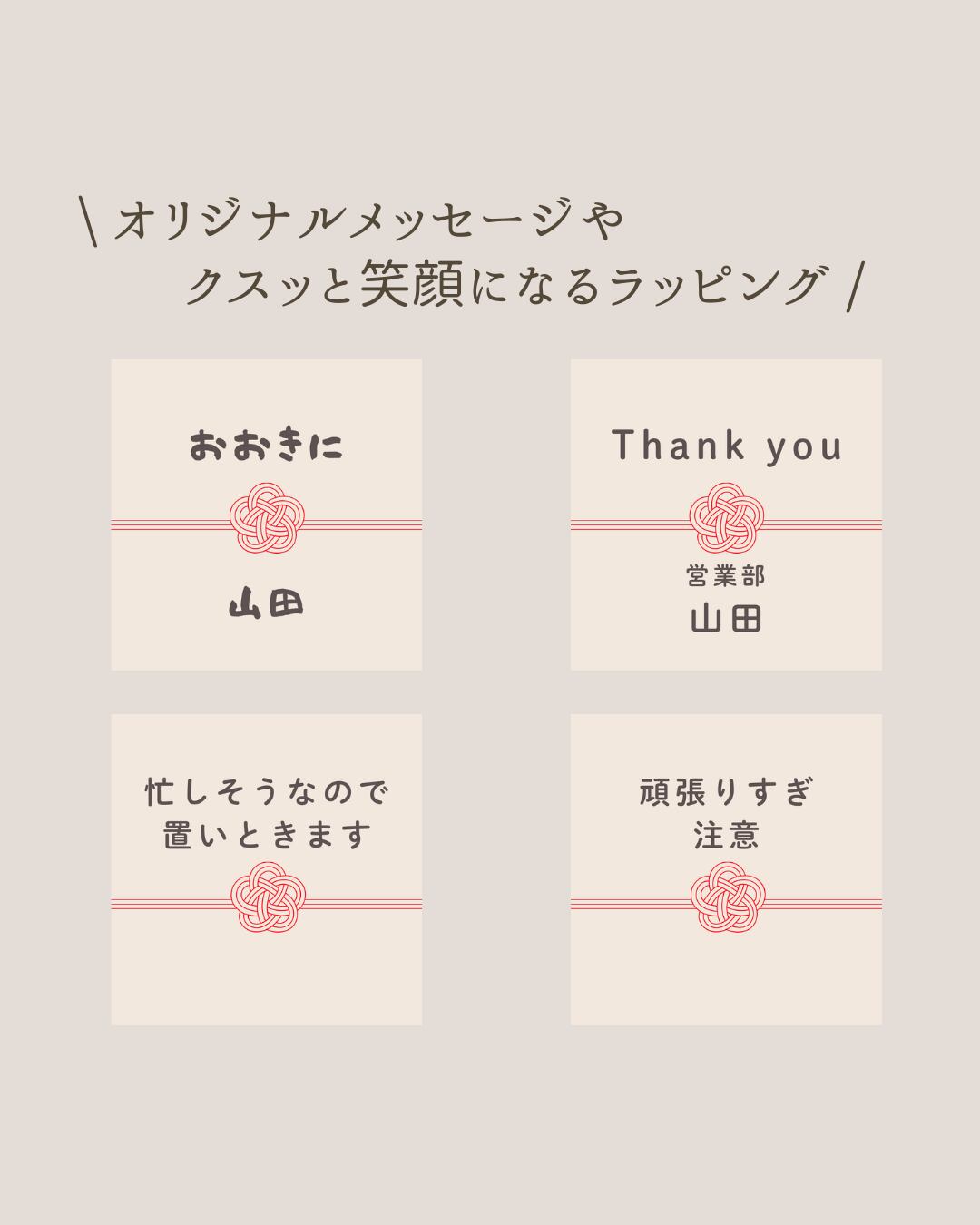 ギフト商品に、オリジナルのメッセージや名入れができます