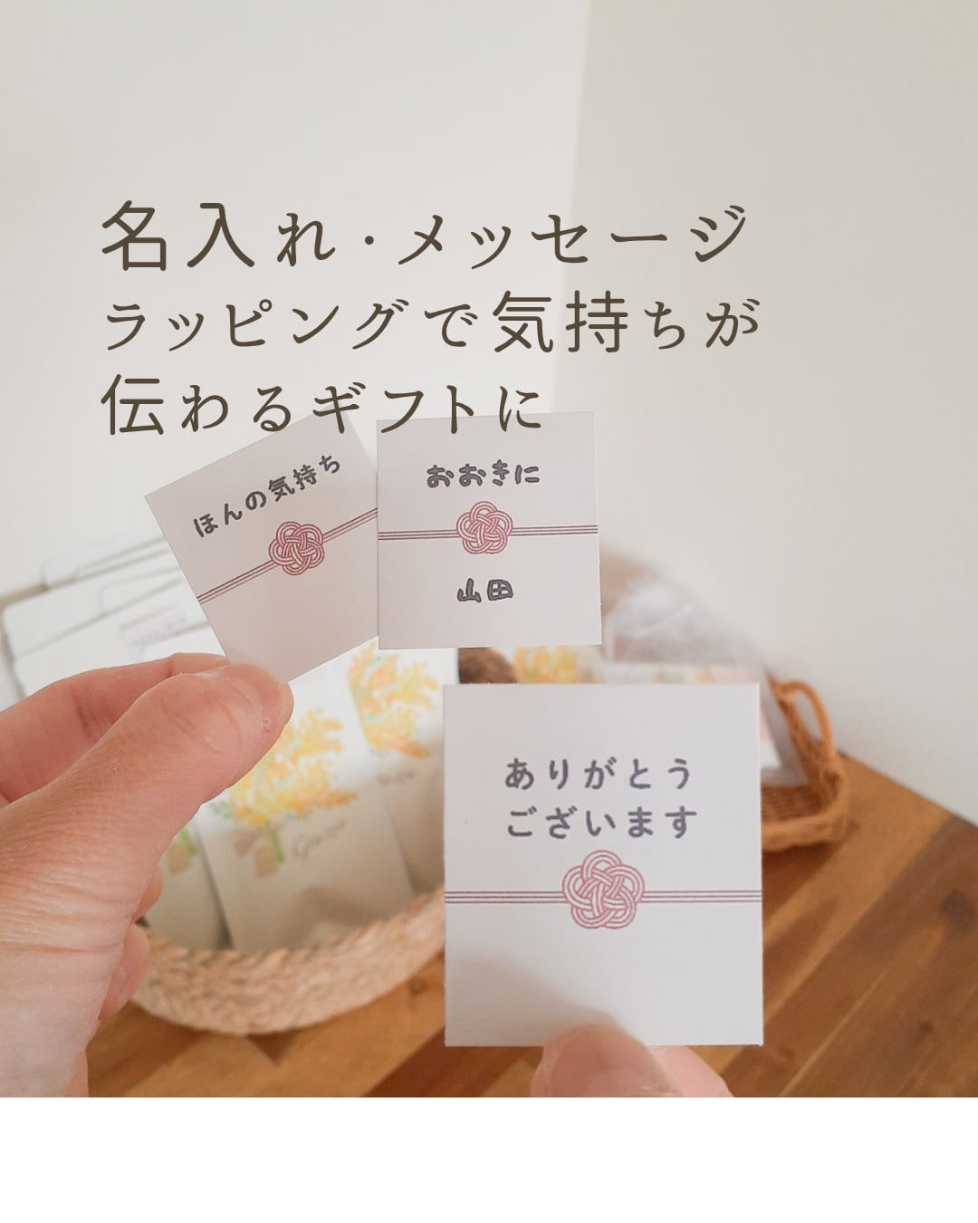 ギフト商品に、オリジナルのメッセージや名入れができます