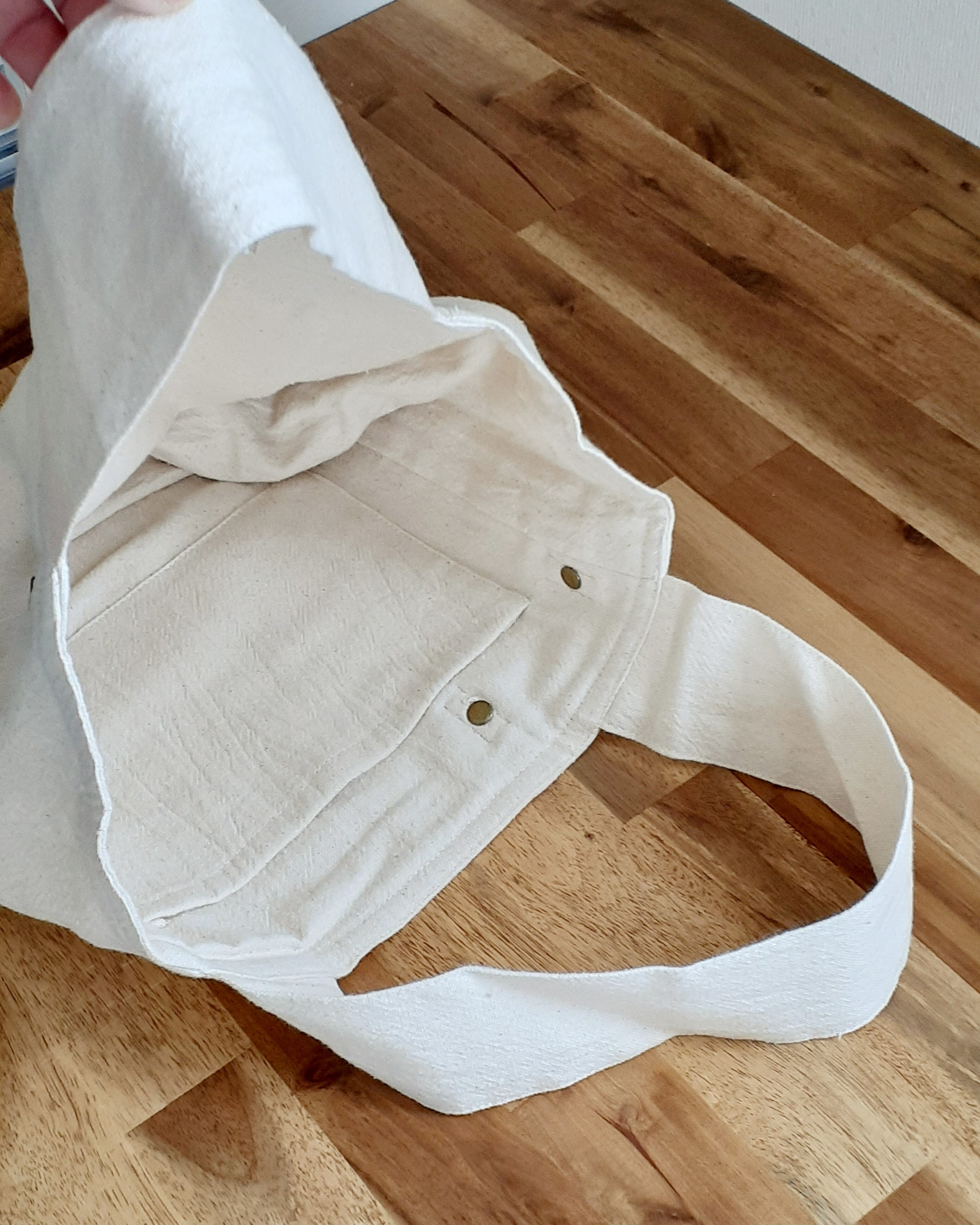 ・ラグワート柄ホワイトのシンプルハンカチ(1枚仕立て)をトートバッグに組み合わせて使います